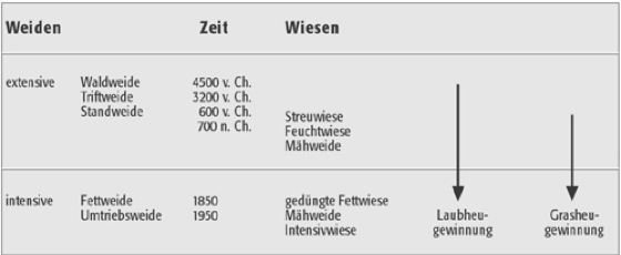 Wiesen und Weiden in ihrer historischen Entwicklung zeigt die Abbildung.