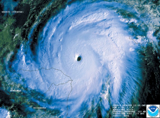 Hurrikan: Hurrikan: Hurrikan Mitch über dem Golf von Mexiko in einer GOES-8-Aufnahme, 26.10.1998, 12:45 GMT, Kanäle 1,3,4.