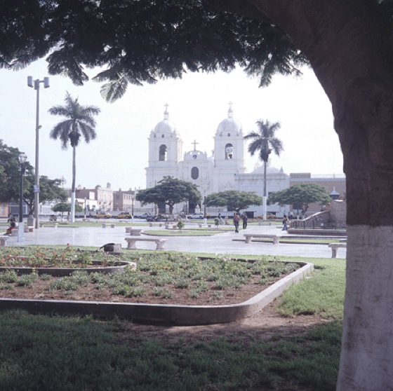 iberoamerikanische Stadt 2: iberoamerikanische Stadt 2: Kirche und Plaza als Zentrum in Trujillo, Peru.