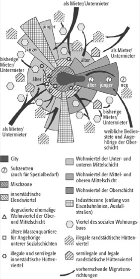 iberoamerikanische Stadt 1: iberoamerikanische Stadt 1: Idealschema der sozialräumlichen Differenzierung iberoamerikanischer Großstädte.