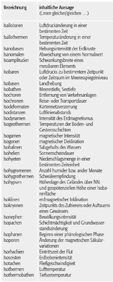 Isolinien 1: Isolinien 1: Arten von Isolinien und deren inhaltliche Aussage (Auswahl).