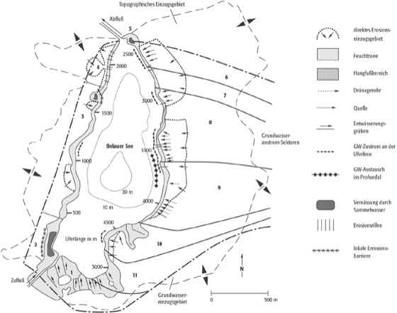 limnische Ökosysteme 2: limnische Ökosysteme 2: Morphologische und hydrologische Gliederung des Einzugsgebietes des Belauer Sees, Schleswig-Holstein (1-11=Grundwasseranstromsektoren).