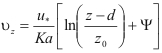 mit u*= Schubspannungsgeschwindigkeit [m/s] und Ka= Kármánzahl. Bei nichtneutralem Schichtungszustand kann das logarithmische Windgesetz durch den Dyer-Businger-Schichtungsterm Ψ, der die thermische Schichtung der Atmosphäre und die Intensität der Vertikalbewegung berücksichtigt, ergänzt werden. Das logarithmische Windgesetz ist die genauere Alternative zum Potenzgesetz.