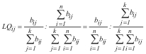 Lokationsquotient, LQij, vergleicht den Anteil einer Bevölkerungsgruppe j (oder auch z.B. die Zahl von Betrieben) im Teilgebiet i mit dem entsprechenden Prozentsatz im Gesamtraum: