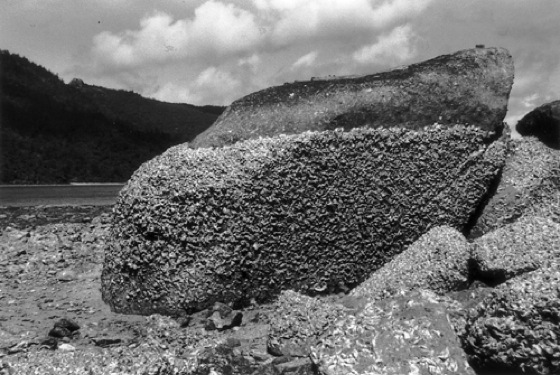 Meeresspiegelindikatoren: Meeresspiegelindikatoren: Säume von Felsaustern (Crassostrea amasa) reichen bis zur mittleren Hochwasserlinie (östliches Australien).