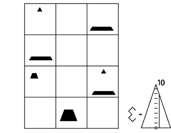 Mosaik-Zyklus-Konzept: Mosaik-Zyklus-Konzept: Mosaikartig verteilte Altersklassen einer Baumart. Die Populationspyramide ergibt sich aus der Summe der Teilpopulationen in den einzelnen Mosaiksteinen.
