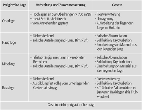 periglaziäre Lagen 4: periglaziäre Lagen 4: Vereinfachtes Schema zur Systematik, Verbreitung und Genese periglaziärer Lagen.