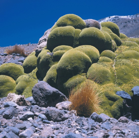 Polsterpflanzen: Polsterpflanzen: Fast 2 m hohes Hartkugelpolster der "llareta" in Nordchile bei 4600 m NN.