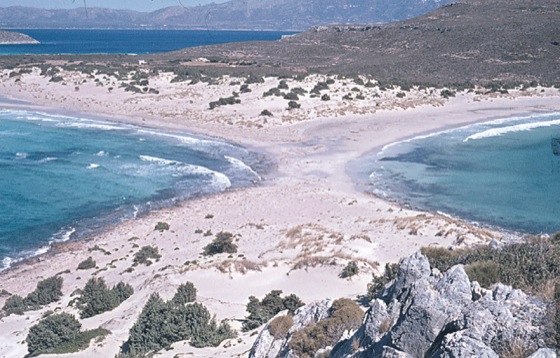 Tombolo: Tombolo: Ein Tombolo verbindet zwei Inseln miteinander (Elaphonisos, südliches Griechenland).