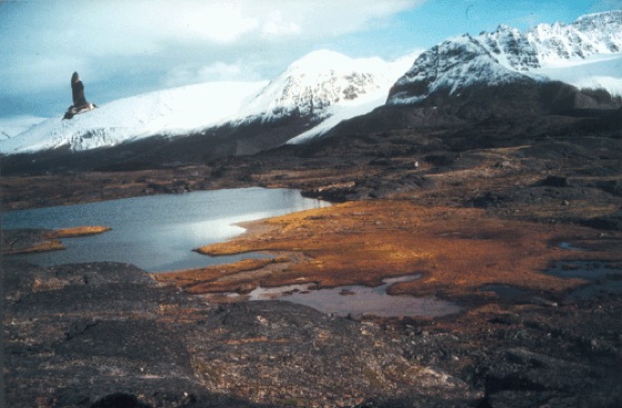 Tundra [von finnisch tunturi=Hügel], baumfreie- oder -arme Vegetationszone der Subpolargebiete. Diese setzen sich neben der Tundra aus Frostschuttzone und Gletscherbereich zusammen. Die Frostschuttzone (bis zu 10 % Vegetationsbedeckung) breitet sich in der Höhenstufung oberhalb der Tundrenzone aus ( Abb. 1 ). Die Tundra nimmt etwa 3-4 % der Erdoberfläche ein und ist besonders auf der Nordhalbkugel vertreten, wo sie den größten Teil der arktischen Festlandsmassen umfasst. Unter Tundra versteht man die Region, die sich nördlich der polaren Waldgrenze erstreckt und eine überraschende Fülle von Flechten, Moosen und Gefäßpflanzen beherbergt. Die Tundra grenzt im äußersten Norden an Polarwüsten, den sog. Kältewüsten an, die durch extreme Niederschlagsarmut (unter 100 mm/Jahr) gekennzeichnet sind. Die Südgrenze der Tundra entspricht der Abgrenzung der Arktis zum borealen Nadelwald. Seit vielen Jahrzehnten gilt der Verlauf der 10°C-Juli-Isotherme, die etwa der polaren Baum- und Waldgrenze entspricht, als weitgehend anerkannte Südgrenze auf den Festländern. Der Übergangsbereich zur borealen Zone wird in Nordamerika von der Wald-Tundra eingenommen. Die Bodenverhältnisse sind durch den darunter liegenden Dauerfrostboden (Permafrost) bestimmt, welcher eine Infiltration verhindert und zur großflächigen Vernässung tiefer liegender Bereiche führt. Die verbreiteten Bodentypen sind Podsole, Gleye und arktische Braunböden. Die hohe Feuchtigkeit lässt unterschiedliche Frostbodenformen (z.B. Erdbülten, Strangmoore, Palsas, Pingos und Frostspaltenpolygone) entstehen. Durch die Bodendynamik wird organisches Material in den tieferen Boden verlagert (Kryoturbation). Es kommt zur Akkumulierung von organischem Material an der Bodenoberfläche in Form von Torfmooren, da Sauerstoffmangel in den vernässten Lagen den Abbau des jährlich von der Vegetation produzierten organischen Materials verhindert. Diese Gebiete gehören zu den großen terrestrischen Kohlenstoffspeichern der Erde. Die Tierwelt wird saisonal von Rentieren, Wölfen und vielen Brutvogelarten bevölkert, aber auch ortsfeste Arten wie Moschusochsen, Polarfüchse, Schneehasen und Lemminge sind für die Tundra typisch. Die wechselwarmen Landwirbeltiere (Reptilien und Amphibien) sind in der Tundra nicht vertreten. Physiognomisch ist die Tundra nicht homogen. In der Süd-Nord-Richtung erfolgt eine subzonale Gliederung, die durch charakteristische Vegetationsmerkmale die ökologischen Verhältnisse unterschiedlicher Tundrazonen widerspiegelt. In der Abbildung 2 wurden in der europäischen und nordamerikanischen Tundra vier Subzonen ausgeschieden. Die arktische Strauch-Tundren-Zone (ASTZ) ist eine Mischung von Tundrengesellschaften und Gebüschinseln, wobei die Baumhöhe selten über 2 m liegt. Die Zone stellt einen Übergangsbereich zur borealen Zone dar und ist im südlichen Bereich mit der Wald-Tundra verzahnt. Die südliche Zwergstrauch-Tundren-Zone (SZTZ) nimmt in der Arktis einen sehr breiten Raum ein. Die Vegetationsbedeckung schwankt zwischen 50% und 100% und ist geprägt von Zwergsträuchern und sogar Gebüschen (Salix, Ledum, Betula), die eine durchschnittliche Höhe von 40-60 cm erreichen. In der mittleren Zwergstrauch-Tundren-Zone (MZTZ) liegt die durchschnittliche Vegetationsbedeckung zwischen 25 % und 50 %. Auffallend sind vielfältige Pflanzengesellschaften der Fjellheide mit der dominierenden Silberwurz (Dryas spp.). Charakteristisch ist in kontinentalen Bereichen die große Flechtenfülle (Flechten-Tundra), wohingegen sich bei maritimem Einfluss die Moosbedeckung (Moos-Tundra) stark erhöhen kann. In der nördlichen Zwergstrauch-Tundren-Zone (NZTZ) liegt die durchschnittliche Vegetationsbedeckung bei 10-25%.