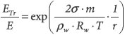 mit E Tr= Sättigungsdampfdruck über einem Tropfen und E=über einer ebenen Wasserfläche, σ=Oberflächenspannung von Wasser, m=Molekulargewicht von Wasser, ρ W=Dichte von Wasser, R w=spezifische Gaskonstante für Wasserdampf, T=Temperatur und r=Tropfenradius. Die Übersättigung ist abhängig vom Tropfenradius sowie der Temperatur und kann durch den Lösungseffekt herabgesetzt werden.