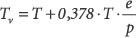 mit T= Lufttemperatur [°C], e= Dampfdruck [hPa], p= Luftdruck [hPa]. Der zweite Term auf der rechten Seite heißt auch virtueller Temperaturzuschlag. Der Zuschlag ist bei niedrigen Temperaturen sehr klein und nimmt nur bei höheren Temperaturen Werte in der Größenordnung von 2 bis 3 K an.