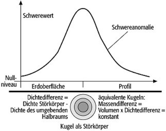 so fordert das starke Äquivalenzprinzip das Verschwinden des Nordtvedt-Parameters η. Tests des starken Äquivalenzprinzips bedeuten i.d.R. eine Messung von η. In der Einsteinschen Gravitationstheorie ist das starke Äquivalenzprinzip erfüllt und η = 0, im Gegensatz zu den meisten alternativen Gravitationstheorien. 3)Geophysik: Die Interpretation von Anomalien der Potentialverfahren wie Gravimetrie und Magnetik ist grundsätzlich nicht eindeutig, d.h. es gibt zu einer Feldverteilung unendlich viele mögliche Modelle. Um zu überschaubaren Lösungen zu kommen, muß durch Randbedingungen, z.B. durch vorgegebene Dichtedifferenzen oder strukturelle Vorgaben, die Lösungsvielfalt eingeschränkt werden. Von Quasiäquivalenz spricht man, wenn es für unterschiedliche Modelle zwar theoretisch keine zwei identischen Modellkurven gibt, doch für bestimmte Parameterkombinationen im Rahmen der Meßgenauigkeit praktisch identische Meßkurven erzeugt werden können. Dies ist in der Geoelektrik der Fall, doch wird dieser Begriff auch in der Gravimetrie und in der Magnetik verwendet ( Abb. ).