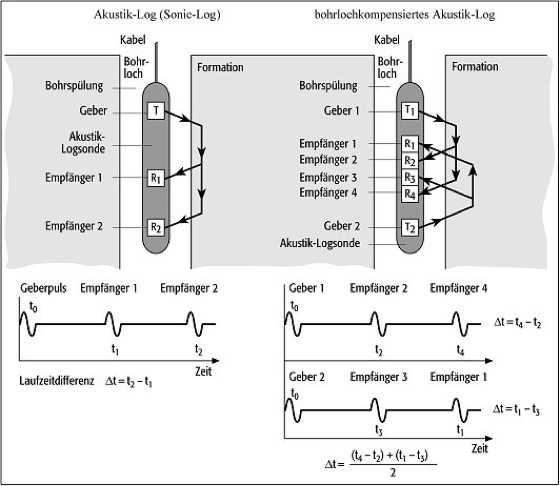 akustische Bohrlochmessung 2: Prinzip der akustischen Laufzeitmessung. akustische Bohrlochmessung 2: