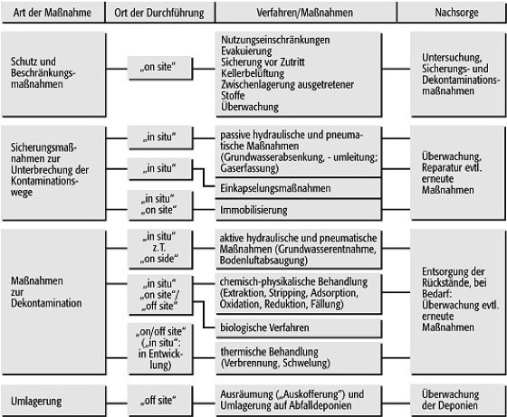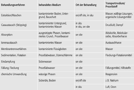 Altlastensanierung (Tab.): Zusammenstellung verschiedener Verfahren zur chemisch-physikalischen Altlastenbehandlung. Altlastensanierung (Tab.):