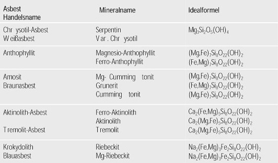 Asbest (Tab.): Übersicht über die Asbeste. Asbest (Tab.):