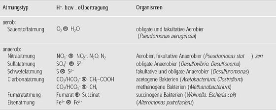 Atmung (Tab.): Aerobe und anaerobe Atmungstypen und ihre elementaren Prozesse der Energiegewinnung. Atmung (Tab.):
