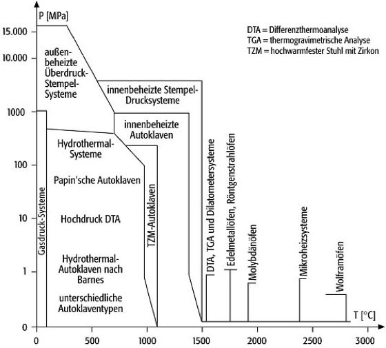 Autoklaven 2: Autoklaven und andere Hochtemperatur-Techniken und ihre Einsatzbereiche im p-T-Diagramm. Autoklaven 2: