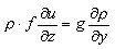 (g = Gravitationsbeschleunigung, f = Coriolisparameter, ρ = Dichte, x, y, z = Raumkoordinaten in West-Ost und Süd-Nord-Richtung sowie vertikal nach unten gerichtet, u, v = Geschwindigkeitskomponenten x, y = Richtung). Im Gegensatz zur barotropen Strömung sind bei barokliner Strömung die Flächen gleichen Druckes und gleicher Dichte gegeneinander geneigt.