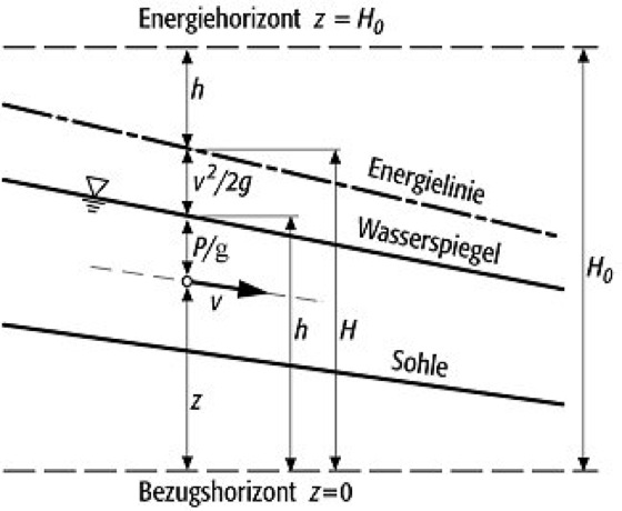 Bernoullische Energiegleichung: Energiehöhe bei stationärer Gerinneströmung. Bernoullische Energiegleichung: