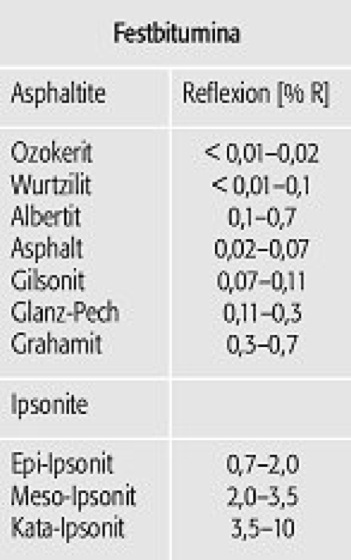 Bitumen (Tab.): Klassifikation der Festbitumina. Bitumen (Tab.):
