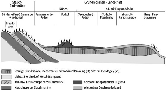 Bodenlandschaft: typische Vergesellschaftung von Böden in einer Altmoränenlandschaft. Bodenlandschaft: