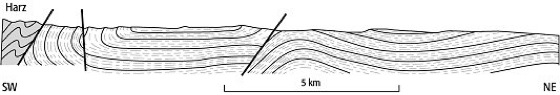 Bruchfaltengebirge: geologisches Profil aus dem Harz-Vorland. Bruchfaltengebirge: