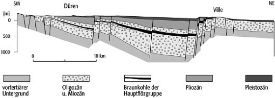 Bruchschollengebirge: Querschnitt durch das niederrheinische Braunkohlengebiet. Bruchschollengebirge: