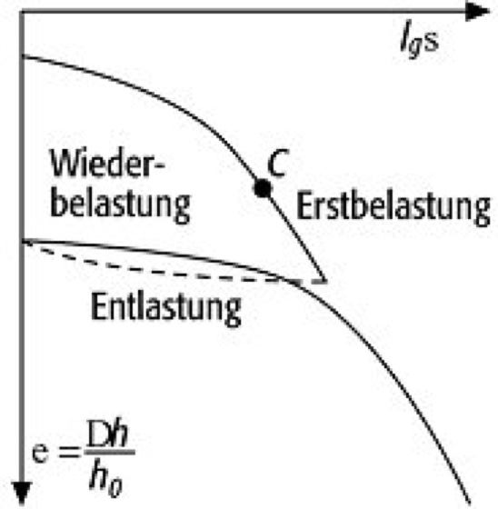 Casagrandeknick, Wendepunkt im Erstbelastungsast der Drucksetzungslinie. Bei ungestörten Böden zeigt der Knick das Ausmaß der geologischen Vorbelastung an ( Abb. ).