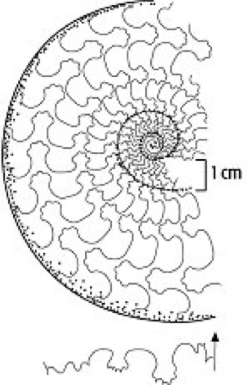 Literatur: [1] LEHMANN, U. & HILLMER, G. (1997): Wirbellose Tiere der Vorzeit. – Stuttgart. [2] MÜLLER, A.H. (1994): Lehrbuch der Paläozoologie, Bd. II, Teil 2: Mollusca 2 – Arthropoda 1. – Jena. [3] RICHTER, A.E. (1982): Ammoniten – Überlieferung, Formen, Entwicklung, Lebensweise, Systematik, Bestimmung. – Stuttgart.