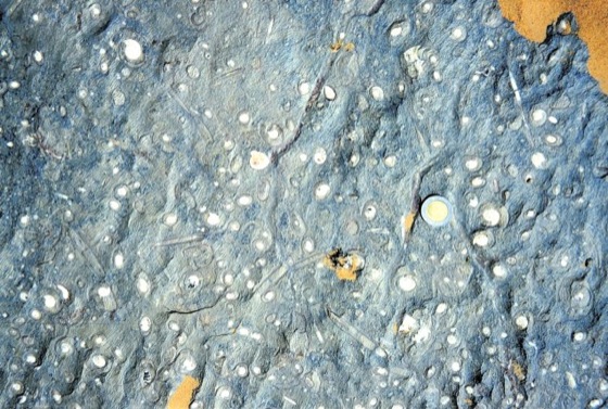 Cephalopodenkalk, pelagische, mikritische Kalksteine mit häufigen Cephalopoden (Goniatiten, Clymenien, Ammoniten) und anderen planktonisch-nektonischen Faunenelementen, die i.d.R. in tieferem Wasser unter der Wellenbasis, z.T. unterhalb der photischen Zone abgelagert werden. Kondensation mit korrodierten Schichtoberflächen und eiseninkrustierte Hartgründe sind häufig. Entsprechend wird mit sehr niedrigen Sedimentationsraten gerechnet (1-5 mm pro 1000 Jahre). Die weitverbreitete Knollenkalk-Textur geht auf die diagenetische Entmischung eines primär tonreichen Kalkschlamms zurück, häufig bilden sich Kalkknollen um Cephalopodengehäuse (Verwesungsfällungskalk durch Ammonifikation oder Automikritbildung durch mikrobielle Zersetzung organischer Substanz); sie können auch aus bioturbaten Gefügen, z.B. Grabgängen, hervorgehen. Das nodulare Gefüge kann durch Drucklösung und Stylolithen-Bildung weiter akzentuiert werden. Häufig werden Cephalopodenkalke auf pelagischen Schwellen abgelagert ("Tiefschwellen", herzynische Fazies); lateral gehen sie dann unter Verminderung des Kalkgehaltes in tonige, z.T. noch Kalkknollen führende Sedimente der Beckenfazies über. An den Hängen der Schwellen sind Rutschungen und Debrisflow-Sedimente häufig, die zur Auflösung der ursprünglich schichtparallel angeordneten Kalknollen und zu chaotischen Lagerungsverhältnissen führen. Devonische Cephalopodenkalke ( Abb. ) in Südost-Marokko sind mit Kalken assoziiert, die birdseyes und Teepee-Strukturen enthalten; Horizonte mit bimodal orientierten, durch Wellengang eingeregelten Orthoceren sind eingeschaltet. Dies bedeutet, daß sich pelagische Ablagerungen offensichtlich auch in flachmarinen intrakratonalen Becken bilden können, in denen erhöhte Wasserenergie selten ist und Sedimenteintrag aus einem vollständig eingerumpften Hinterland weitgehend fehlt. Besonders häufig sind Cephalopodenkalke im Devon und Unterkarbon der europäischen und nordafrikanischen Varisziden; in Südfrankreich und Nordspanien sind sie unter dem Namen Griotte bekannt. Ebenfalls weit verbreitet, oft als Ammonitico rosso bezeichnet, sind sie in Obertrias und Jura des Tethys-Raumes (Alpen, Mediterrangebiete zwischen Griechenland und Südspanien). Ein Sonderfall sind die aus orthoconen Nautiliden-Gehäusen bestehenden Orthocerenkalke des Ordoviziums, Silur und Unterdevon. [HGH]