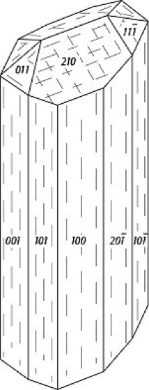 Epidot, [von griech. epidosis = hinzugeben], Allochit, Beustit, Delphinit, Escherit, Orendalit, Pistazit, Thallit, Ca2(Fe3+,Al) Al2[O|OH|SiO4|Si2O7]; Mineral mit monochromatisch-prismatischer Kristallform; Farbe: dunkelblau, schwärzlich-, gelb- bis pistaziengrün; Glasglanz; selten durchsichtig, meist durchscheinend; Strich: weiß bis grau; Härte nach Mohs: 6-7; Dichte: 3,38-3,49 g/cm3; Spaltbarkeit: gut nach (001), weniger gut nach (100) ( Abb. ); Bruch: muschelig, uneben; Aggregate: säulig, nadelig, derb, plattig, strahlig, büschelig, körnig; Kristalle vielfach quergestreift; vor dem Lötrohr aufblähend und dann schmelzend; in HCl unter Kieselgallerte-Ausscheidung löslich; Genese: hydrothermal (auch metamorph); Begleiter: Granat, Vesuvian, gediegen Kupfer, Chlorit, Adular, Albit, Akmit, Diopsid, Quarz; Vorkommen: weltweit als gesteinsbildendes Mineral in Ca-Al-reichen Paragenesen der Kontakt- u. Regionalmetamorphosen; Fundorte: St. Gotthard, Graubündner und Walliser Alpen (Schweiz), Bourg d`Oisans (Dauphiné, Frankreich), Arendal (Norwegen), Sulzer (Alaska), Nazjamsker Berge (Ural). [GST]