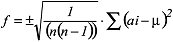 mit n = Anzahl der Messungen, ai = Meßdaten und μ = Mittelwert der Meßreihe. Als Schätzung für die Unschärfe eines Einzelwertes wird u.a. die Formel für die Standardabweichung benutzt und als Standardfehler (auch mittlerer quadratischer Fehler) bezeichnet. Bei aus mehreren Meßreihen zusammengesetzten Ergebnissen sind die Gesetze der Fehlerfortpflanzung zu berücksichtigen.