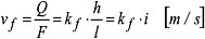 Filtergeschwindigkeit, vf, Quotient aus Grundwasserdurchflußmenge Q und der zugehörigen Fläche eines Grundwasserquerschnittes F: