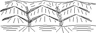Flatiron, [von engl. = Bügeleisen], Rampenstufen, auf den Rückhängen von Schichtkämmen herauspräparierte kleine Geländestufen, die aus härteren Gesteinspartien gebildet werden ( Abb. ). Sind die Rückhänge durch Erosionsrinnen gegliedert, so erscheint der Verlauf der Meso- und Mikrostufen im Grundriß in der Form eines Bügeleisens. Flatirons treten nur bei geringer oder fehlender Vegetationsbedeckung und Bodenbildung an der Oberfläche in Erscheinung.