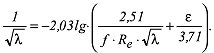 Dabei ist f ein die Gerinnegeometrie beschreibender Faktor, Re die Reynoldszahl und ε = ks/d die relative Rauheit; ks stellt die äquivalente Sandrauheit dar. Im Bereich