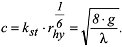 stellt die Formel von Manning-Strickler im rauhen Abflußbereich eine gute Näherung der Formel von Darcy-Weisbach dar. Der Zusammenhang zwischen den Formeln von Manning-Strickler, de Chezy-Brahms und Darcy-Weisbach ergibt sich durch: