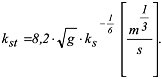 Zwischen der äquivalenten Sandrauheit ks und dem Rauheitsbeiwert nach Manning-Strickler kst besteht die Beziehung: