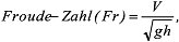 wobei V die Strömungsgeschwindigkeit, g die Erdbeschleunigung und h die Tiefe des Strömungsmediums (hydraulischer Radius) darstellen. Die Froude-Zahl dient der Kennzeichnung kritischer Fließzustände: Fr 1 kennzeichnet ruhige Fließbedingungen ("Strömen"), während Fr > 1 für turbulentes Fließen steht ("Schießen"). Gerinneströmung.