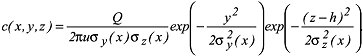 Gauß-Modell, ein Ausbreitungsmodell, das auf der analytischen Lösung der Bilanzgleichung für einen Schadstoff c basiert (Abb.). Das Gauß-Modell bildet die Grundlage der Berechnung der Schadstoffausbreitung nach der TA Luft. Die stationäre Konzentrationsverteilung einer kontinuierlich emittierenden Punktquelle der Quellstärke Q kann beschrieben werden durch: