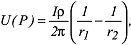 r1 und r2 sind dabei die Abstände von P zu den Elektroden A und B. Mißt man den Spannungsabfall ΔU ebenfalls zwischen den Elektroden A und B (sog. 2-Punkt-Anordnung) erhält man aus dem Quotienten R = ΔU/I (Ohmscher Gesamtwiderstand zwischen A und B) den spezifischen Widerstand des Untergrunds: