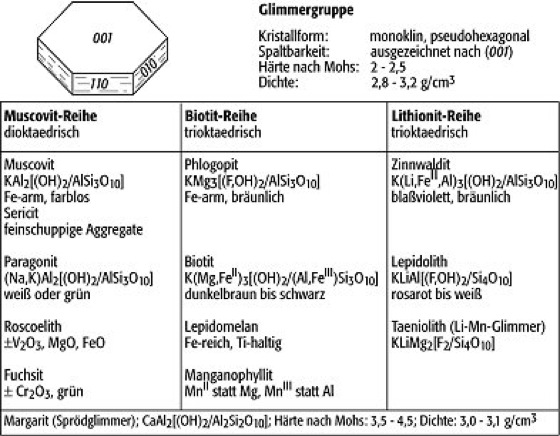 Glimmer: Übersicht über die wichtigsten Glieder der Glimmergruppe. Glimmer: