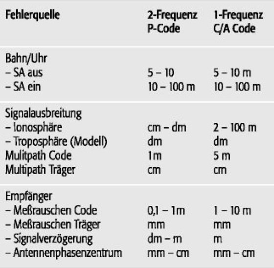 GPS-Fehlerbudget (Tab.): Fehlerbudget bei GPS. GPS-Fehlerbudget (Tab.):