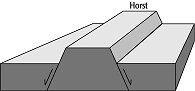 Horst, langgestrecktes Krustensegment, das gegenüber den angrenzenden Krustensegmenten gehoben erscheint und an den Längsseiten durch vom Horst weg einfallende Abschiebungen begrenzt wird ( Abb. ).