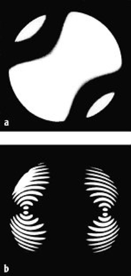 Interferenzbilder, modifizierte Bilder ( Abb. 1 u. 2 ) der Lichtquelle bei der Polarisationsmikroskopie bei indirekter konoskopischer Betrachtungsweise. Konoskopie, Indikatrix.