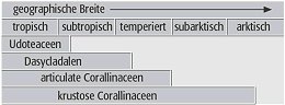 Kalkalgen 3: latitudinale Verbreitung rezenter benthischer Kalkalgengruppen.