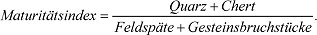 kompositionelle Reife, Ausdruck des Anteils verwitterungs- und transportempfindlicher Komponenten in Sedimenten und Sedimentgesteinen. Sie nimmt daher mit zunehmendem Transportweg und/oder mehrmaliger Umlagerung zu. Als grobes Maß gilt der Maturitätsindex (bezogen auf den jeweiligen prozentualen Gehalt):