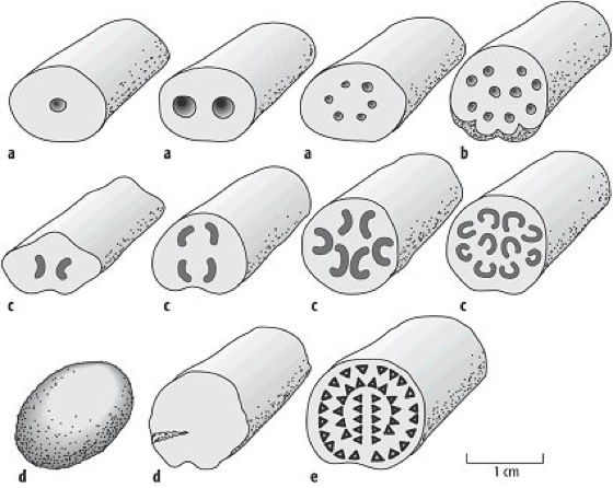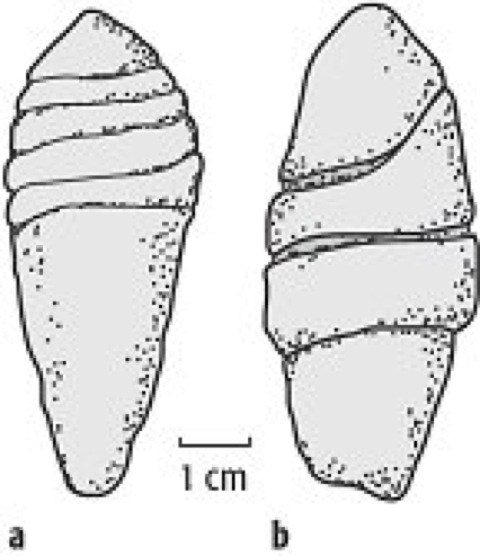 Koprolith 1: a) heteropolarer und b) amphipolarer Koprolith eines Fisches oder Amphibiums. Koprolith 1:
