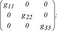 c) orthorhombisches Achsenkreuz: a, b, c beliebig, α = β = γ = 90º; Metriktensor: