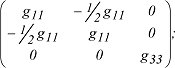 f) hexagonales Achsenkreuz: a = b, c beliebig, β = 120º, α = γ = 90º; Metriktensor: